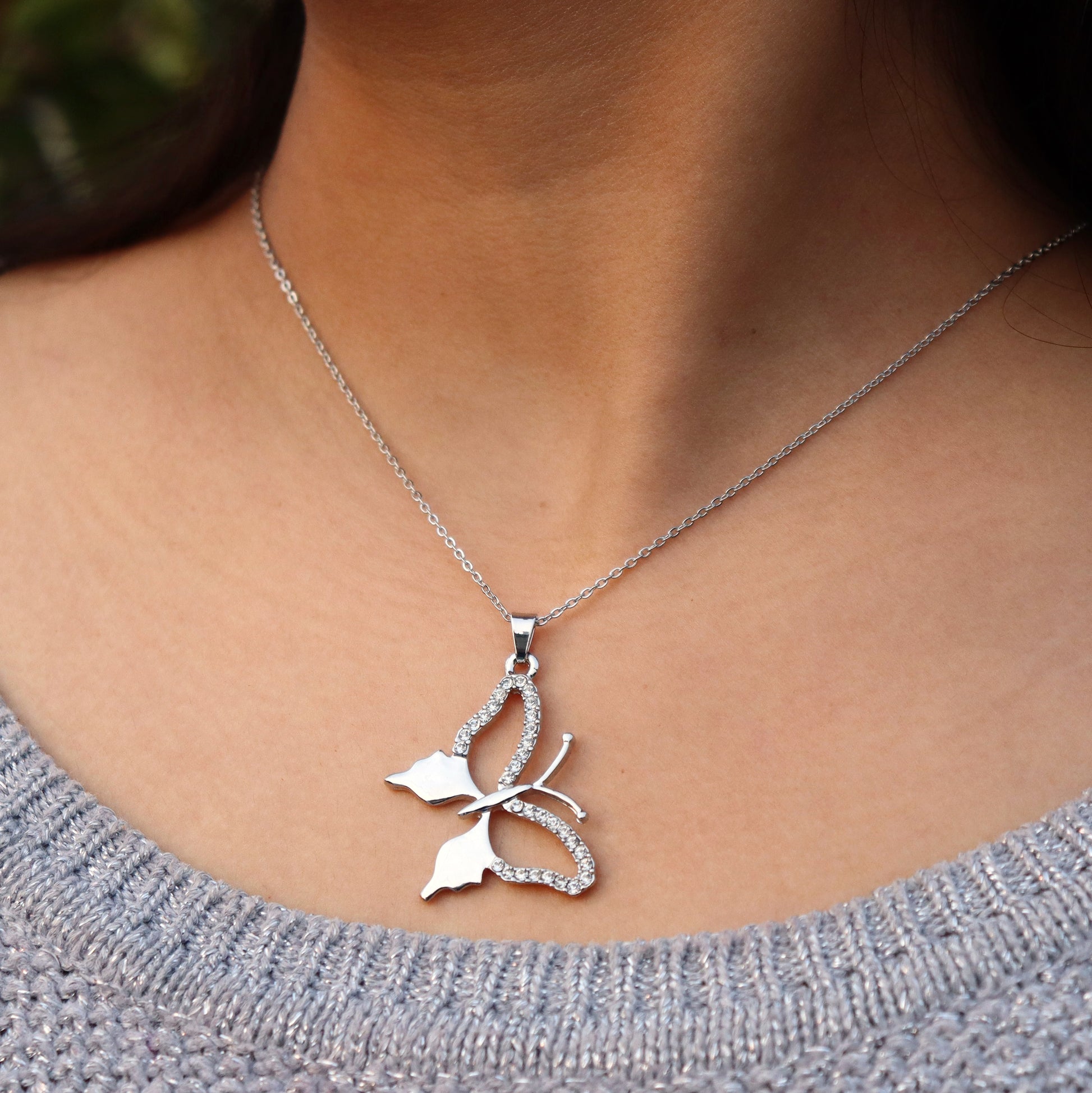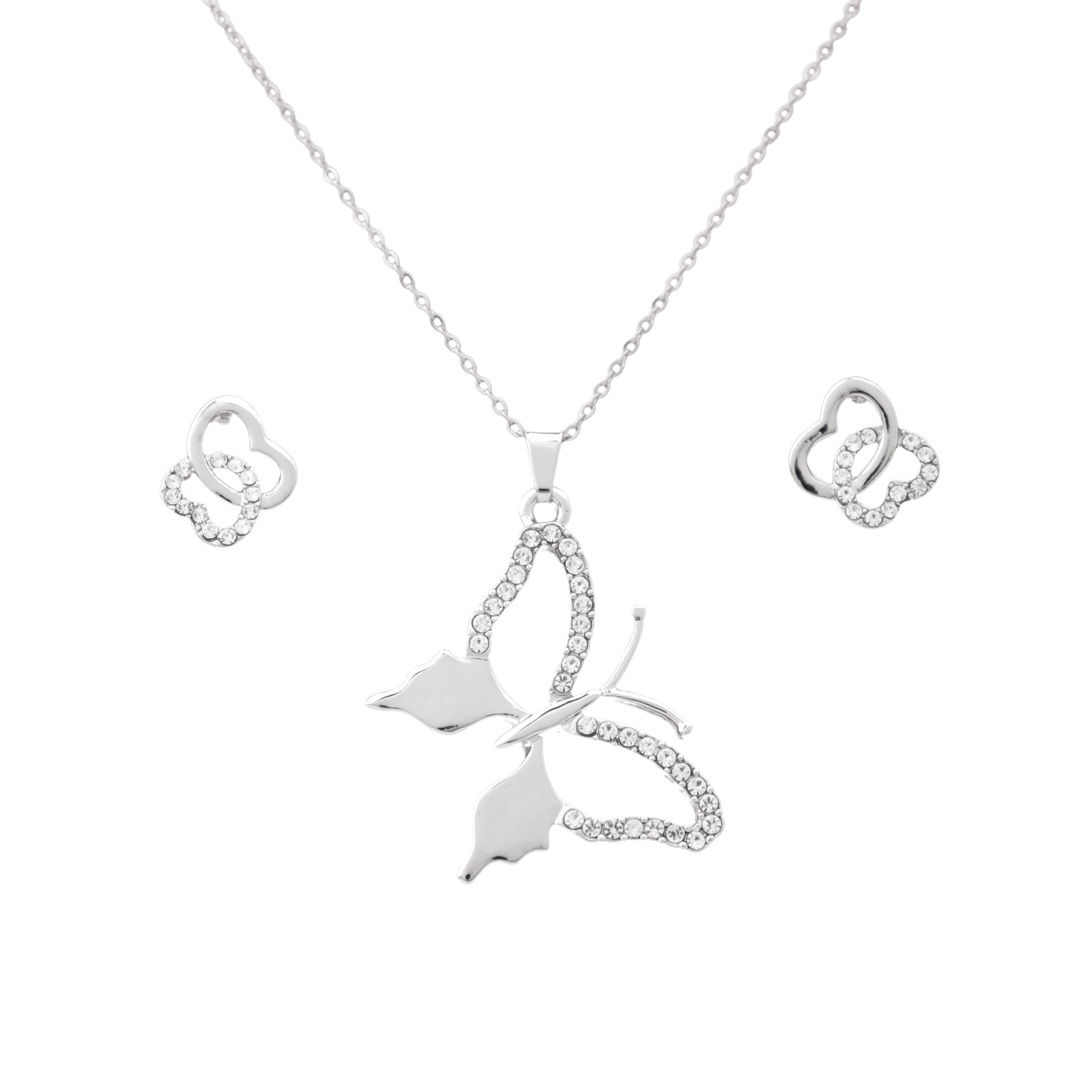 Spread your wings with this stunning butterfly-shaped necklace and earring set.