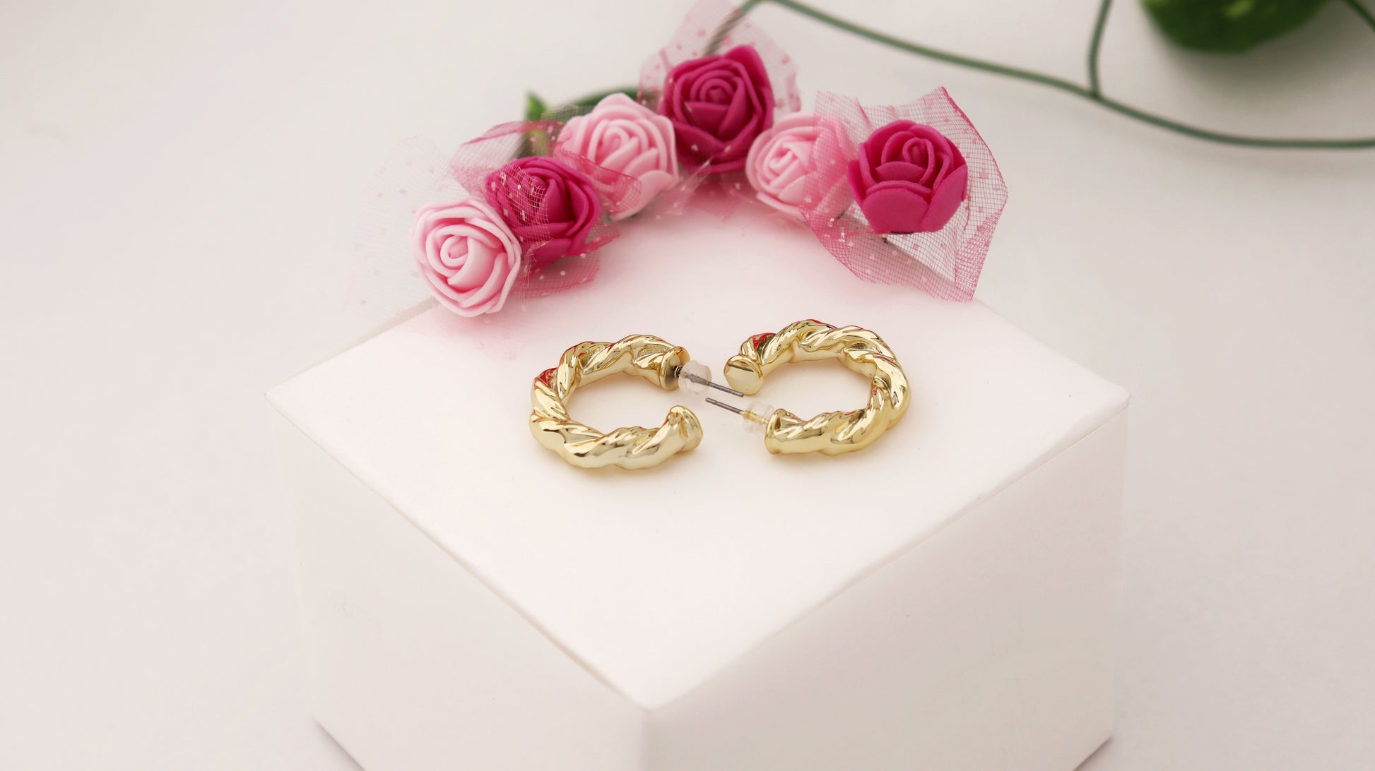 Add a touch of warmth and elegance to your daily look with these Golden Twist Hoop Earrings. Thick, twisted design in golden hue makes for a perfect accessory for everyday wear.